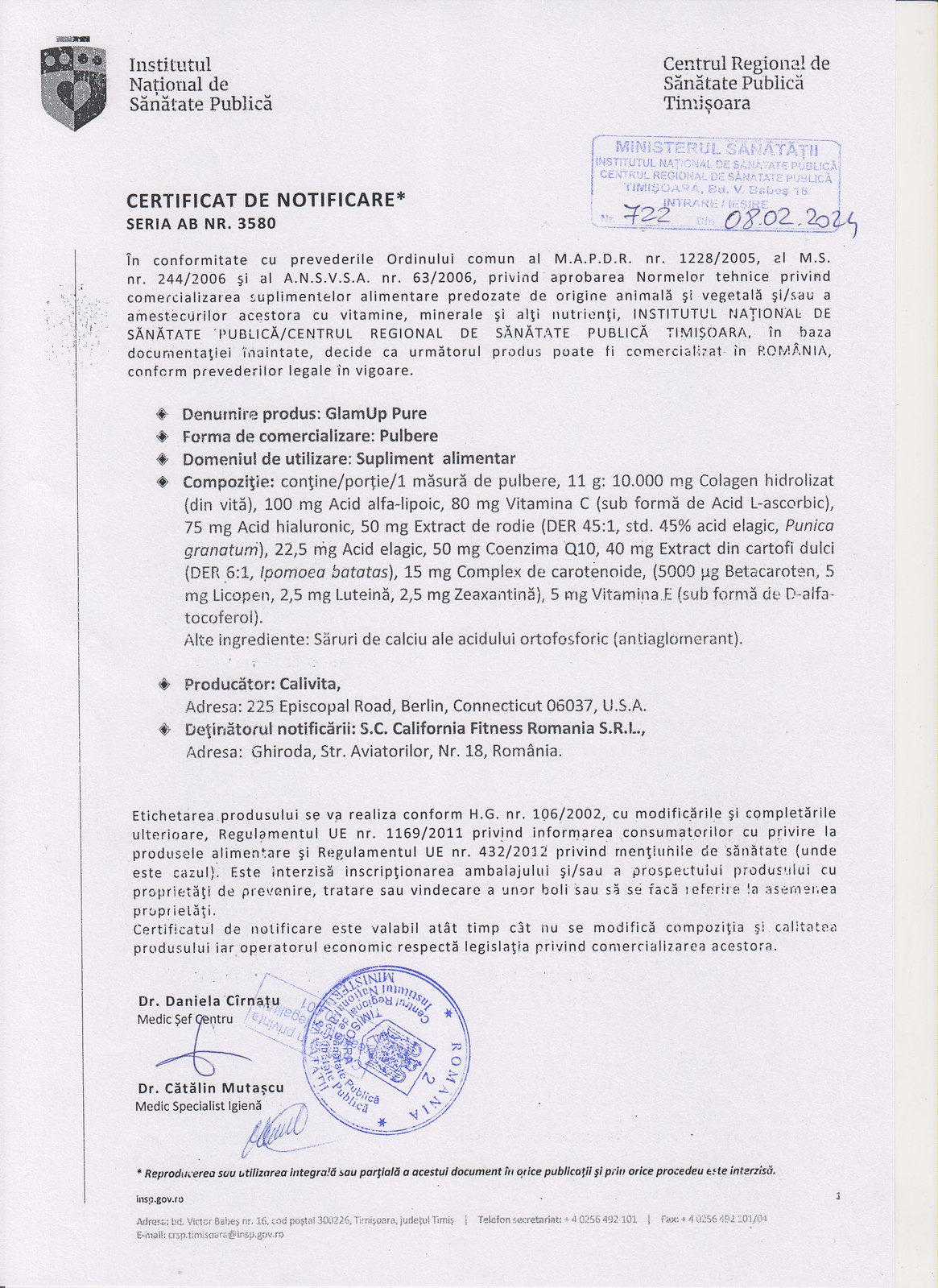 • Produsele sunt fabricate în conformitate cu standardele cGMP (Current Good Manufacturing Practice), fiind supuse unor controale continue şi unor proceduri de examinare regulate de către FDA (Food and Drug Administration). Toate produsele noastre au avizul Ministerului Sănătăţii.