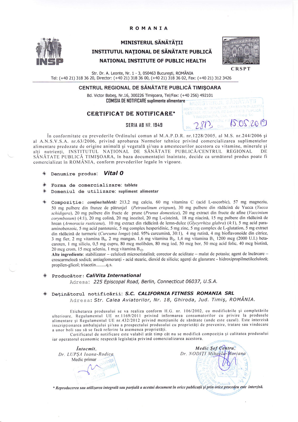 - Produsele sunt fabricate în conformitate cu standardele cGMP (Current Good Manufacturing Practice), fiind supuse unor controale continue şi unor proceduri de examinare regulate de către FDA (Food and Drug Administration). Toate produsele noastre au avizul Ministerului Sănătăţii.