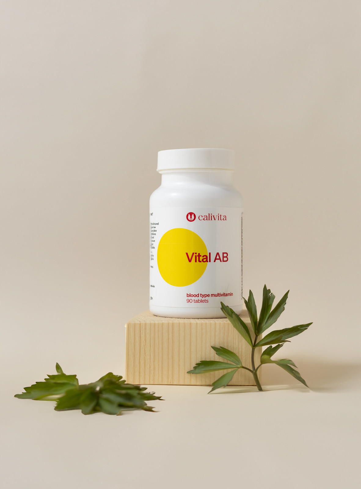 Persoanele cu grupa sanguină AB au un metabolism mai lent, care nu poate asigura în totalitate digestia şi absorbţia macronutrienţilor, motiv pentru care se recomandă consumul moderat de carne. Alimentaţia potrivită acestei grupe de sânge poate fi una de tip mixt, iar consumul de fructe şi legume este esenţial. Produsul Vital AB este recomandat în principal persoanelor cu grupa sanguină AB. Este un complex de multivitamine, minerale şi extracte din plante precum struguri roşii, frunze de ţelină şi usturoi, special creat pentru nevoile nutritive ale acestei grupe de sânge.