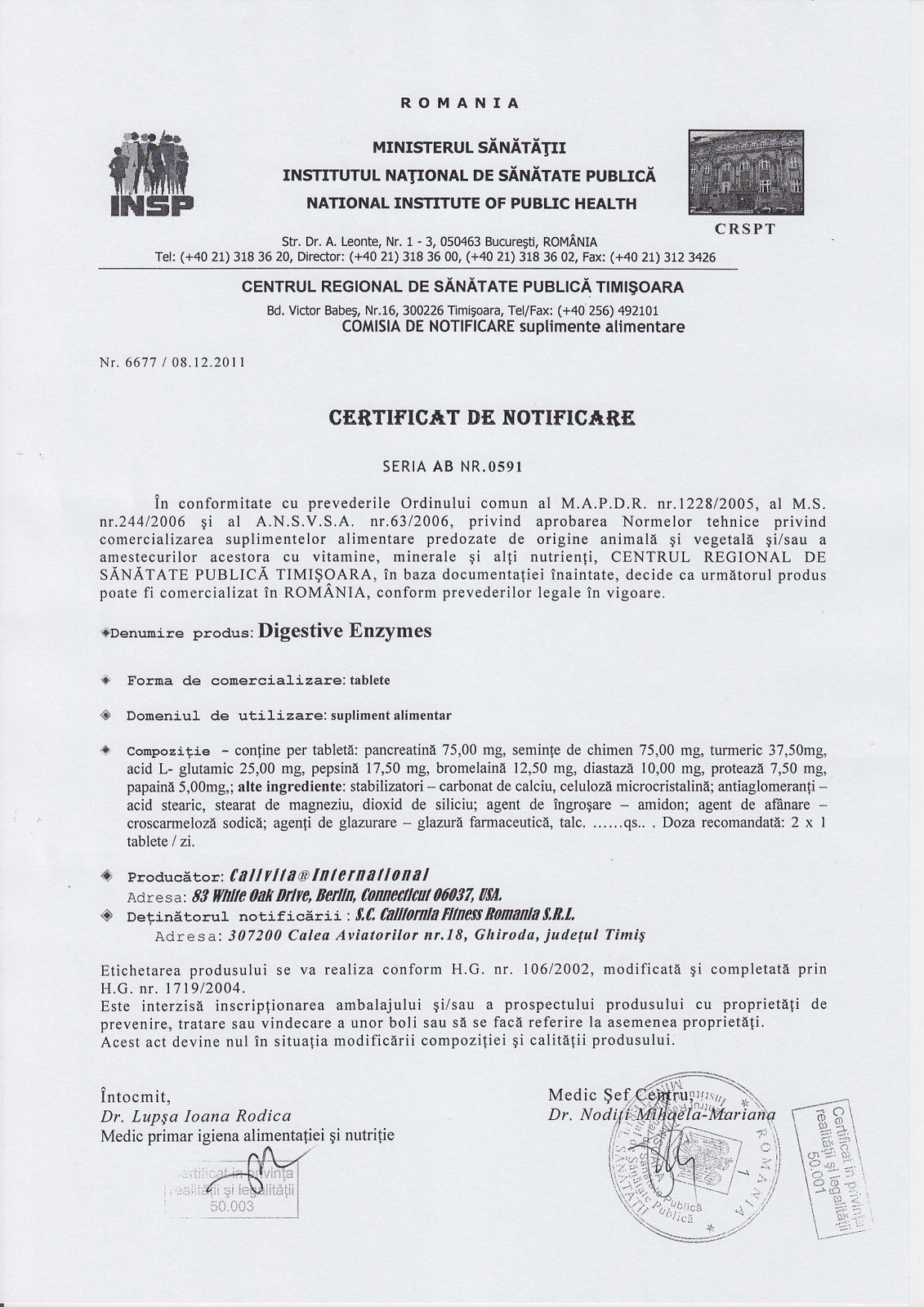 - Produsele sunt fabricate în conformitate cu standardele cGMP (Current Good Manufacturing Practice), fiind supuse unor controale continue şi unor proceduri de examinare regulate de către FDA (Food and Drug Administration). Toate produsele noastre au avizul Ministerului Sănătăţii.