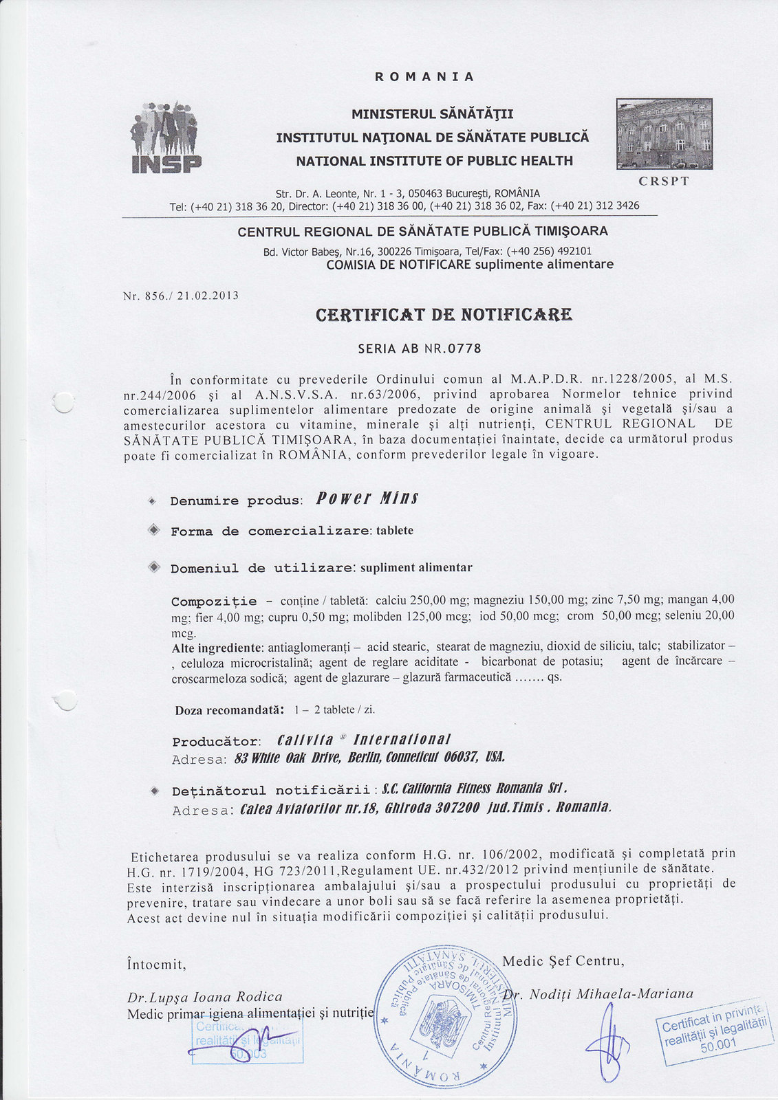 - Produsele sunt fabricate în conformitate cu standardele cGMP (Current Good Manufacturing Practice), fiind supuse unor controale continue şi unor proceduri de examinare regulate de către FDA (Food and Drug Administration). Toate produsele noastre au avizul Ministerului Sănătăţii.